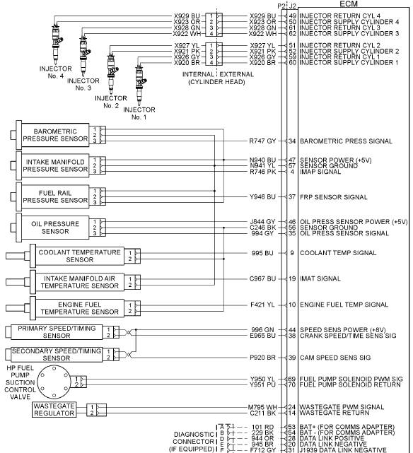 該1204e-e44引擎連接到J2連接器上的ECM示意圖