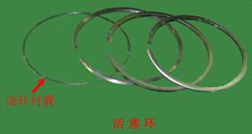 Ø 柴油機每個活塞裝有二道氣環和一道油環。 前兩道為氣環。第一道氣環與第二道氣環打有標記一面朝上,不得裝反。(第一道氣環為鍍鉻桶面環,第二道為扭曲環。)