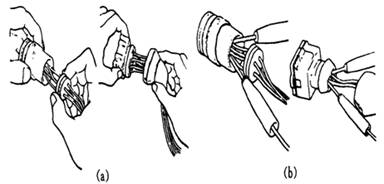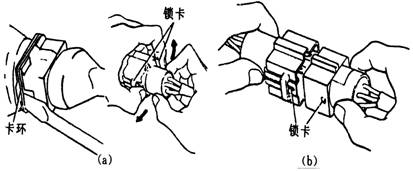 導(dǎo)線連接器的拆裝(a)拆出連接器 (b)裝上連接器